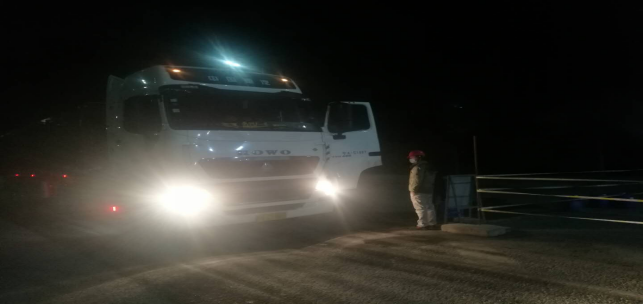 在園區(qū)南門,他們截止當日夜間21時40分,面對進出車輛檢測、消毒、登記已成為最普通的工作。期間,園區(qū)進出車輛127輛(其中水泥23車輛,熟料19車輛,液堿3車),人員132人信息,體溫均在正常范圍,另外隨行38人體溫均在正常范圍。