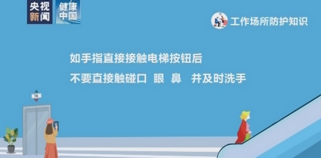 盡量避免乘坐電梯。如確需乘坐,佩戴口罩,與他人保持一定距離,盡量避免用手指直接接觸按鈕。