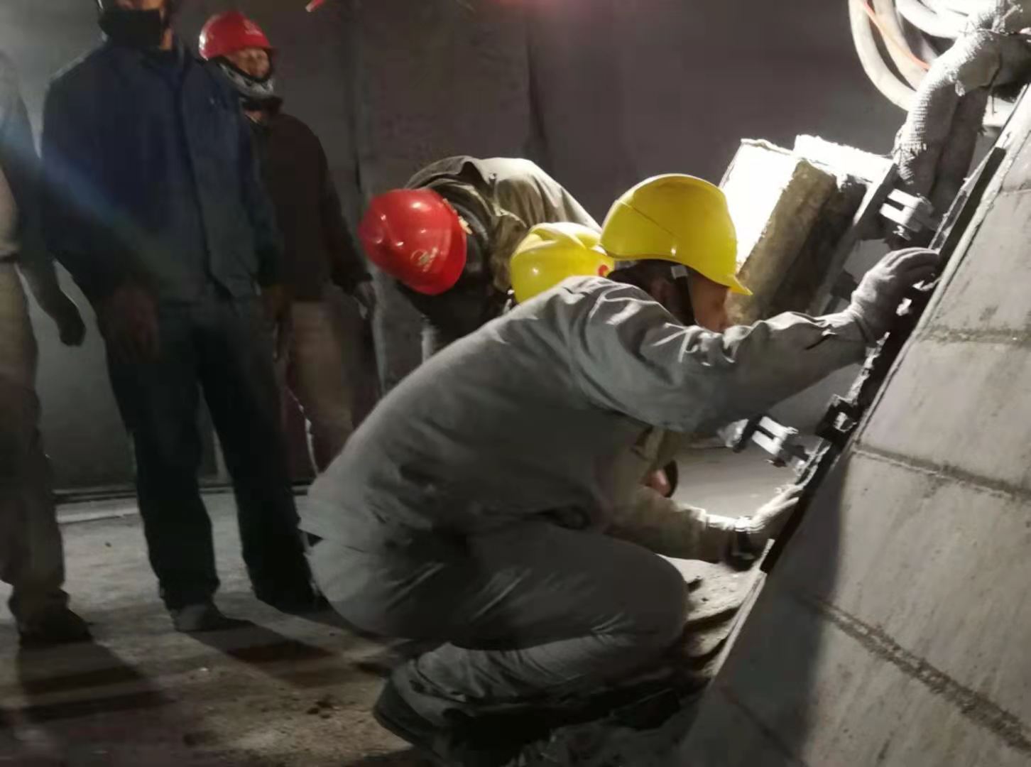 臨近開爐前,主管電石副總岳經(jīng)理和裝置長郁占春仔細觀察爐內(nèi)情況,為開爐做好準備工作。